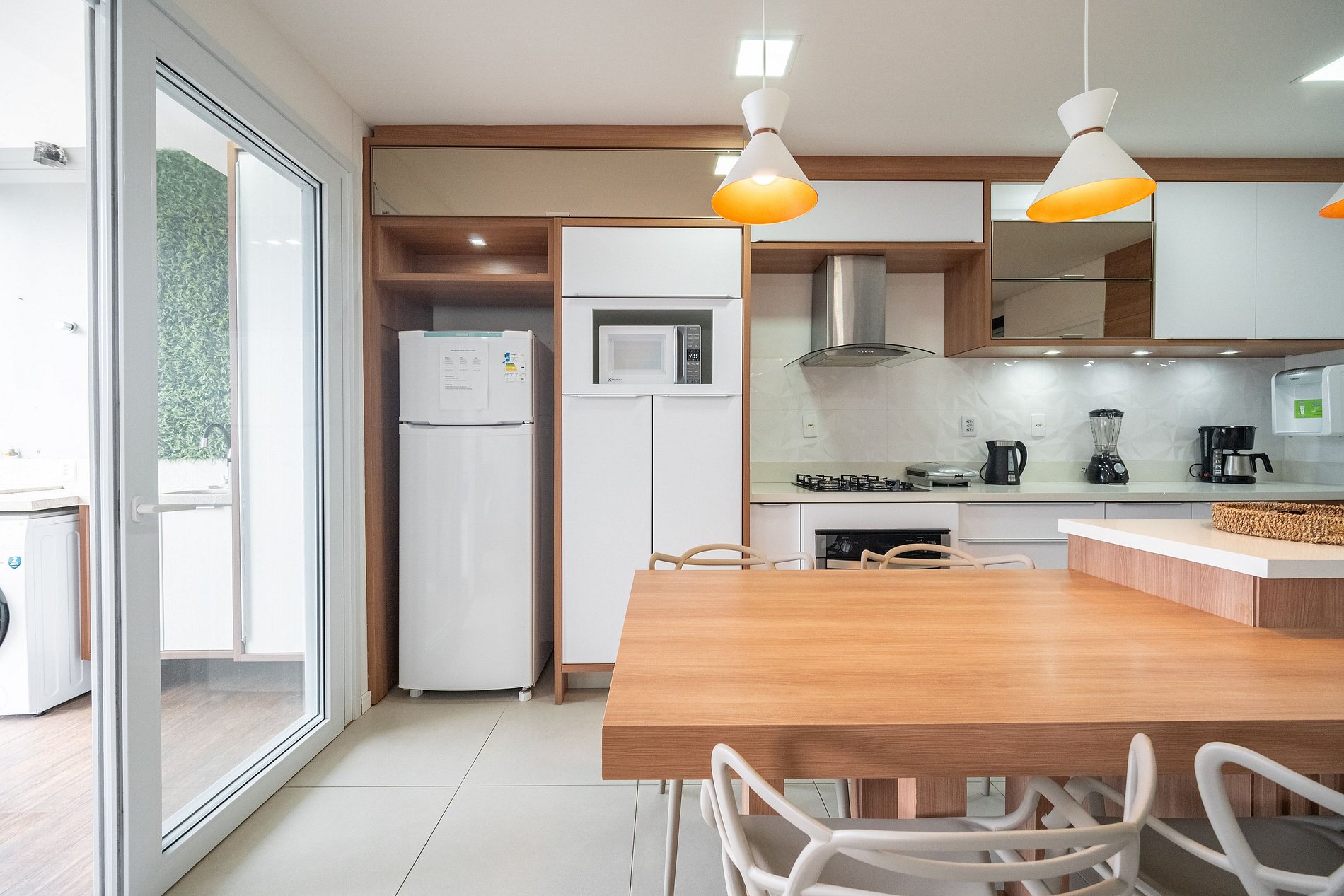 Para uma experiência completa, o apartamento é totalmente equipado para as suas necessidades: a cozinha e a área de serviço contam com os mais variados utensílios e eletrodomésticos, incluindo churrasqueira e máquina de lavar.
